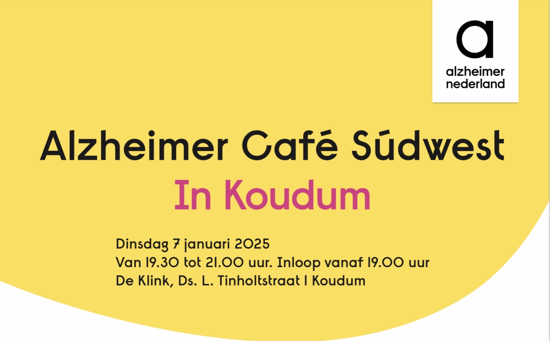Het programma is van 19.30-21.00 uur; Inloop vanaf 19.00 uur. De entree is gratis evenals het kopje koffie en thee. Voor meer informatie over het Alzheimer Café kunt u contact opnemen met Gerda Muller: g.muller@alzheimervrijwilligers.nl of 06 2571 7156.